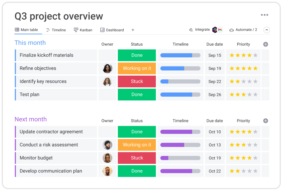Key features: Manage tasks and workflows to fuel team collaboration and productivity at scale. Includes monday.com sales CRM for tracking and managing all aspects of your sales cycle, customer data, and more in one place. monday dev also helps build agile workflows to drive impact across product, design, and R&D teams.