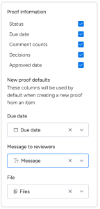 You can effortlessly map the proof information you’d like to see to your item and sub-item columns, keeping everyone on the board in the loop.