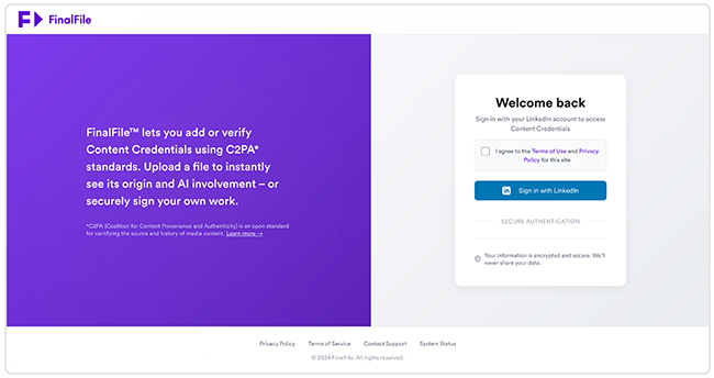 And if you’re curious about a file you’ve received, FinalFile.com can verify whether it already contains Content Credentials, showing its origin, its authorship, and any AI involvement.