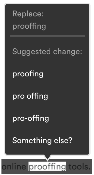 Spelling suggestions are created as a new comment on the proof.