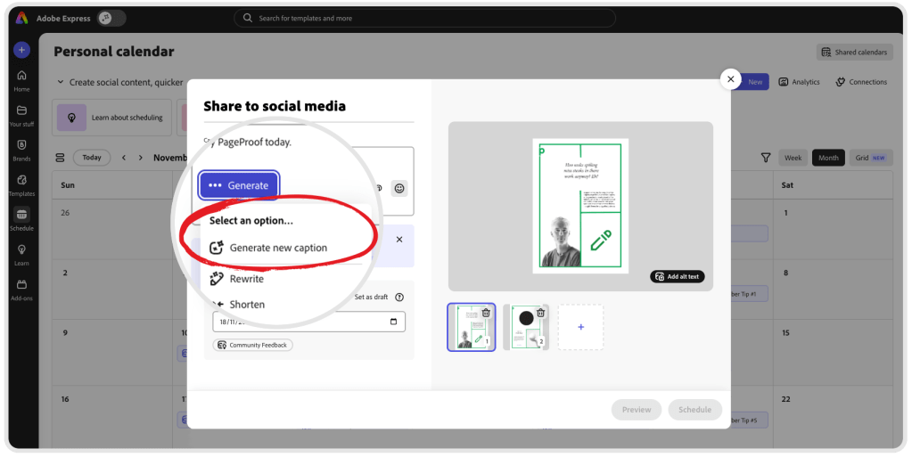 The updated Caption Generator creates AI-powered social captions tailored to your design, helping you produce relevant, ready-to-post copy faster.
