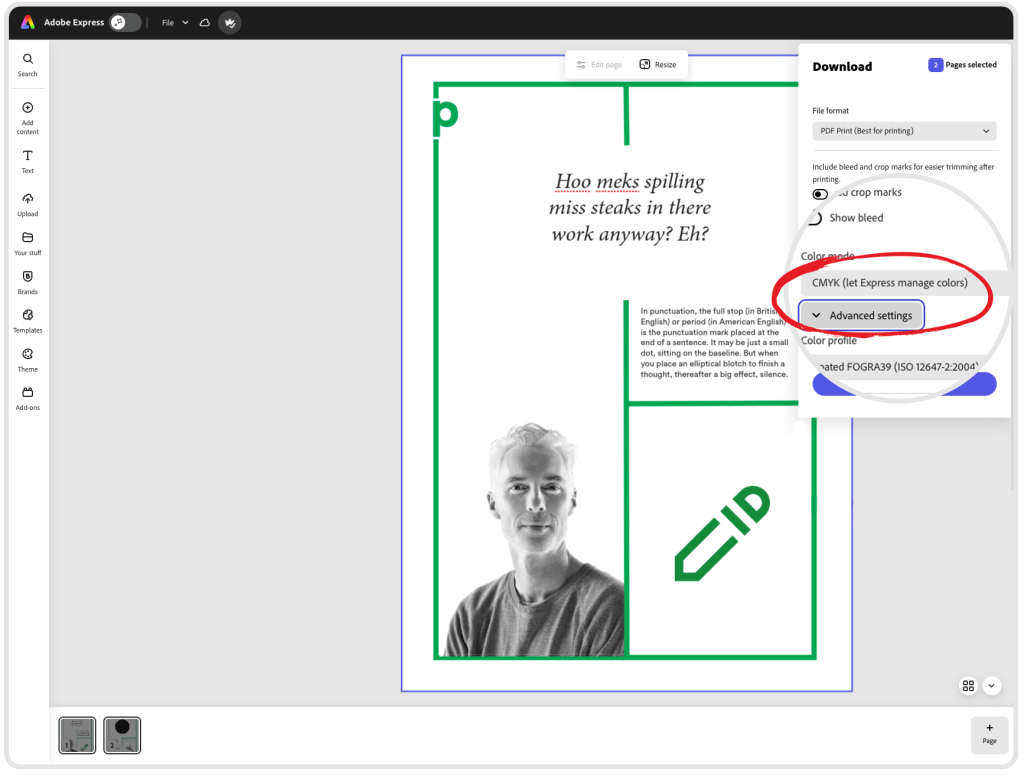 Download a print-ready PDF with the CMYK color profile of your choice.