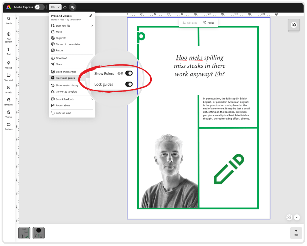 Whether you’re lining up text, balancing imagery, or working across multiple pages, rulers and guides help remove the guesswork. They give every creator a simple, reliable way to achieve polished, cohesive layouts – the kind that instantly elevate the professionalism of your work.
